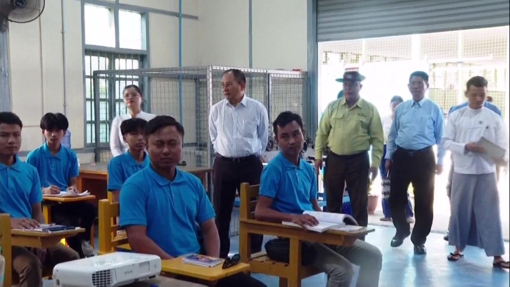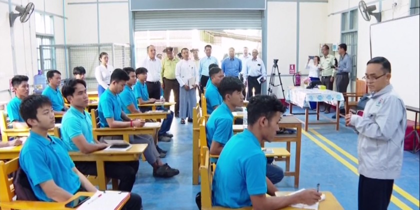 Union Minister for LabourU Aung Kyaw Hoe, together with the responsible officials from Yangon Region, visited the Yangon Region Skills Training Center (Yankin) in Yankin Township to observe and encourage the opening of the Motor Vehicle Engine Repair Training Course No. 4/2025, which was launched under the supervision of the Yangon Region Committee for the Elimination of Child Labouron December 4.