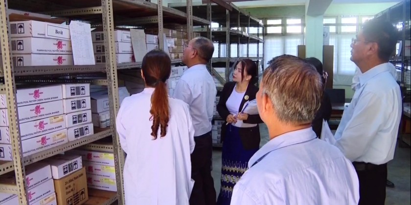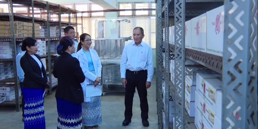 In the morning on December 3, the Union Minister and officials also visited the main medical storage facility of the Social Security Board in Ahlon Township, where they inspected the storage and distribution of medicines and medical supplies for Social Security Board hospitals and township clinics.