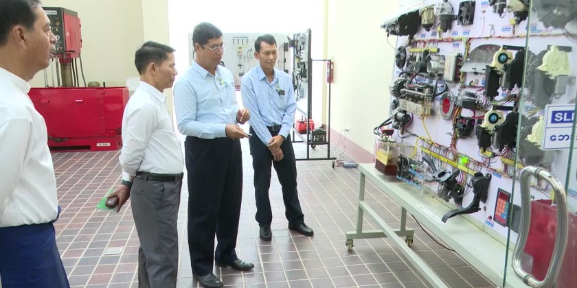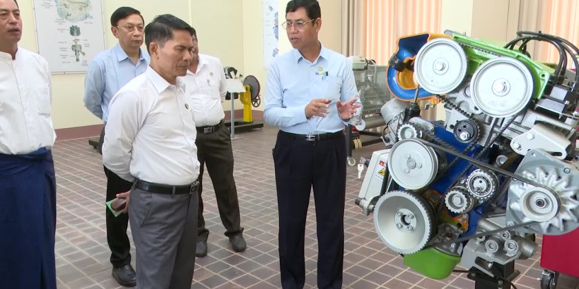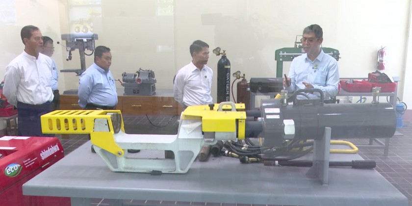 The Union Minister for Agriculture, Livestock and Irrigation U Min Naung inspected the Mechanical Training Center of Mechanical Circle (1) under the Irrigation & Water Utilization Management Department in Yangon and gave necessary instruction to the responsible officials in the morning on December 3rd.