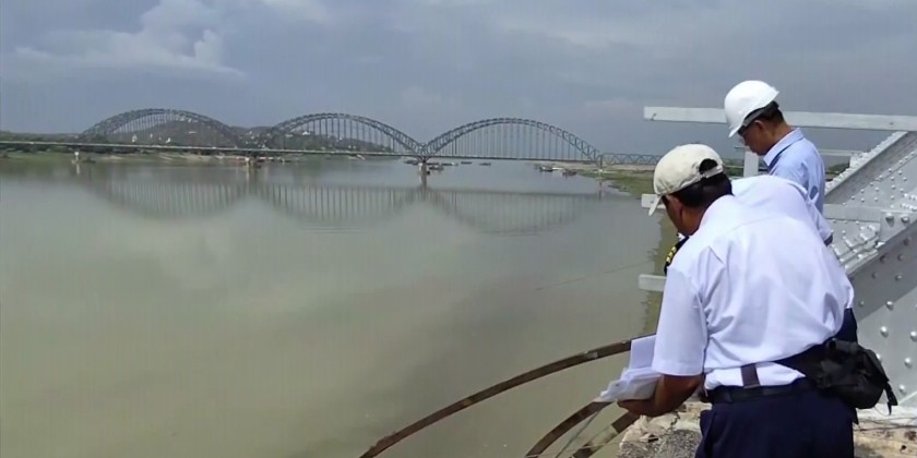 After that, the Deputy Prime Minister and party inspected the earthquake-damaged Sagaing Bridge (Inwa). They assessed the collapse of six steel truss spans into the Ayeyarwady River and the damage to the bridge abutments. Due to the partial collapse of the bridge, temporary transportation disruptions have occurred.