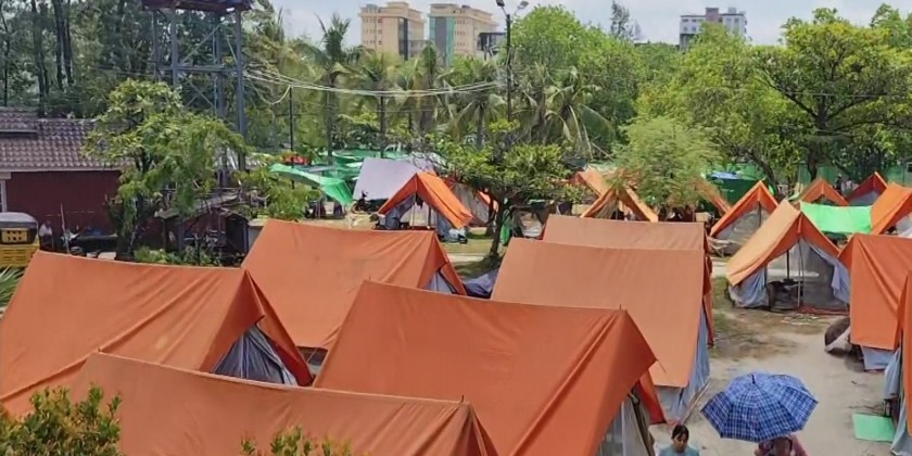 First, the SAC member Union Minister and officials visited Mandalay International Airport to assess the damage caused by the earthquake and inspected the condition of the airport terminal building, temporary passenger terminals set up for domestic flight arrivals and departures, preparations for reopening international flights, including temporary arrival and departure terminals, damage to the runway, the structural integrity of the temporary air traffic control tower and the earthquake-affected main control tower.