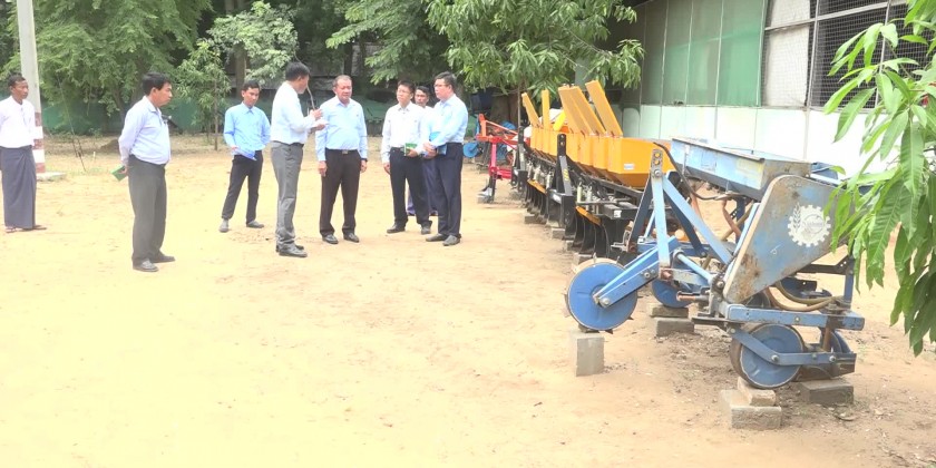 At the No.3 Medium Mechanic Workshop under the Agriculture Mechanization Department (Magway), the Deputy Minister observed the working processes and gave necessary instructions. Then, he met with the departmental officials at the Irrigation and Water Utilization Management Department and discussed the development of agriculture-based products.