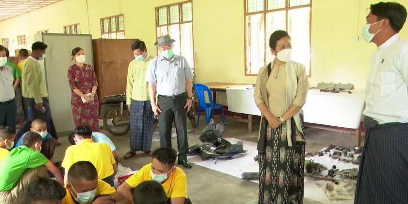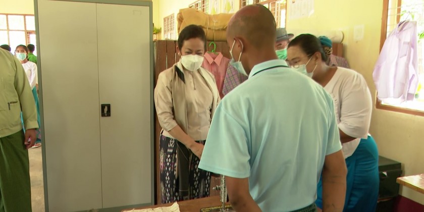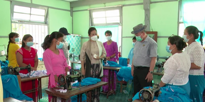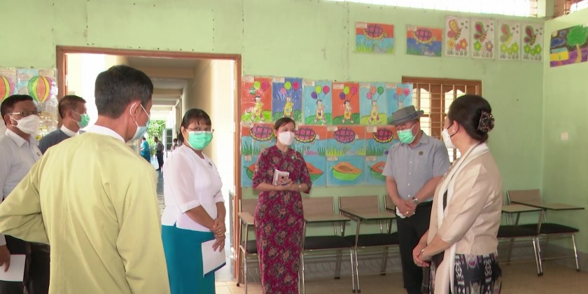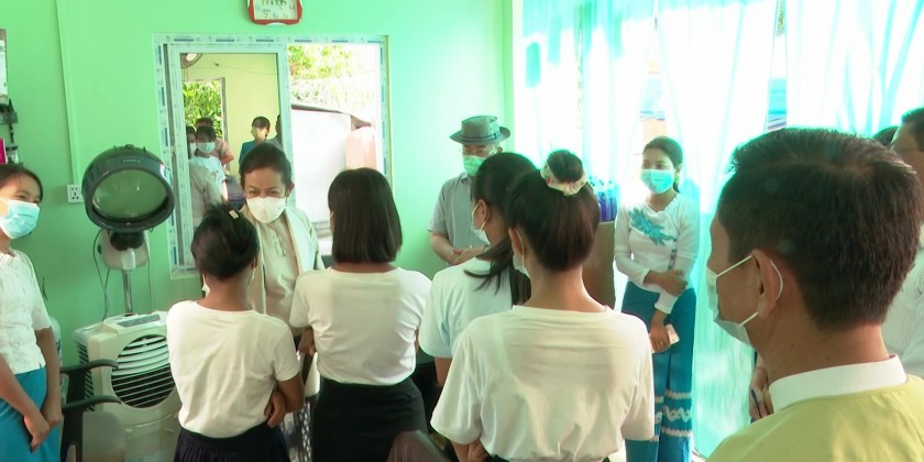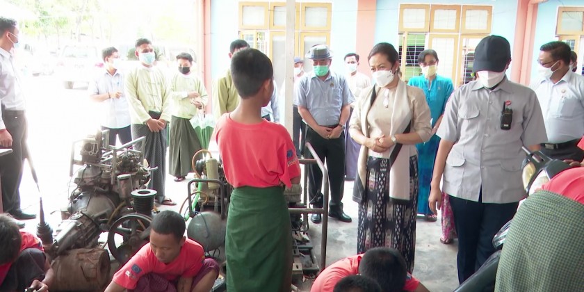The Union Minister continued her inspection trip to the training school for youth with disabilities in Aungmyethazan Township, heard reports and gave necessary instructions including cooperation with relevant departments for handicrafts market.