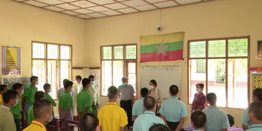 First, the Union Minister visited the Patheingyi youth training school, heard report on the training programmes and stressed the importance of implementation of the objectives of the school, the need to adopt an accessment system and hold a workshop with stakeholders and security measures.
