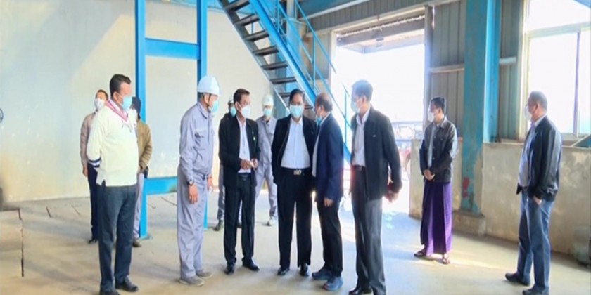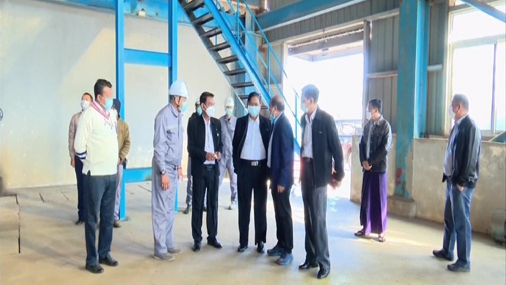 Union Minister for Industry Dr. Charlie Than visited the Crown Cement Plant in NaungCho Township of Shan State. There, the Union Minister called for efforts to revive the industries which use local raw materials, quality production and quality control.