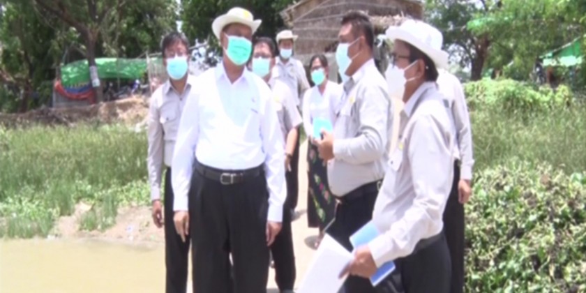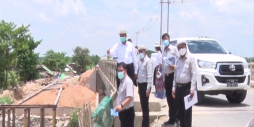 The Union Minister also inspected the construction of the 2-lane concrete brige between the Milepost No. 20/6 and 20/7 on the Twante-Maupin Road, approaching road and erosion prevention process.