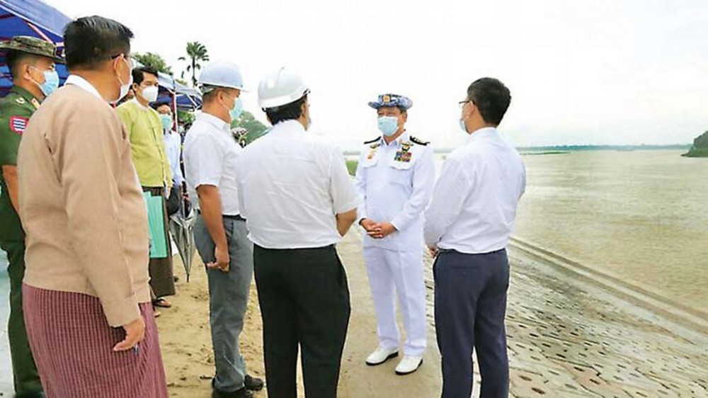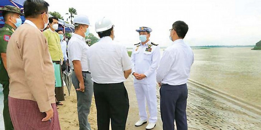 The Union Minister first visited a river bank erosion prevention site in Nyaungdon Township, heard reports on the annual prevention process based on budget, gave necessary instructions for maintenance and inspected the bank erosion prevention works.