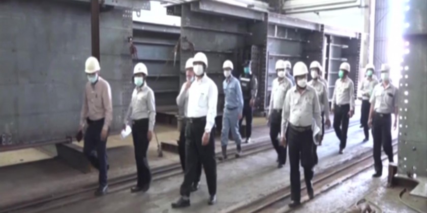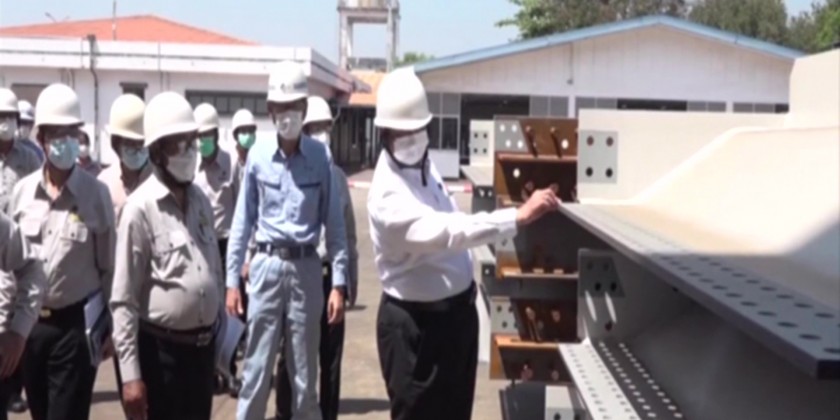 Union Minister for Construction U Shwe Lay on Saturday visited the J & M Steel Solutions Co., Ltd in Thaketa Township of Yangon Region, heard reports and inspected the iron structures for bridges destined for Bangladesh.
