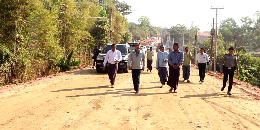 He instructed the responsible officials to complete the works according to the designated road designs within the specified timeframe and to properly ensure the structural stability of the road shoulders. Afterwards, the Region Chief Minister proceeded to the area near the Kyaik Pyinnyar Ya Pagoda in Bago, where the 64th Farmers' Day will be held grandly.