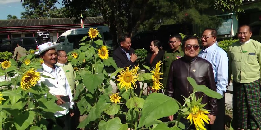 Then, the Chief Minister met with the local farmers in Taungni Village and provided 5 million kyats to erect a fence for 100 acres sunflower plantation and provided Urea fertilizer and vegetable seeds to the farmers.