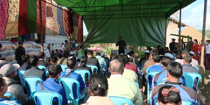 Then, the Chief Minister provided 5.2 million kyat cash assistance to erect a fence for the cooperative farmland of the Kone Tan Kyi village and provided medicine to the poultry farm. Then, the Chief Minister attended the winter crops seeding ceremony and provided sunflower seeds, soybean seeds and vegetable seeds to the farmers and growers.