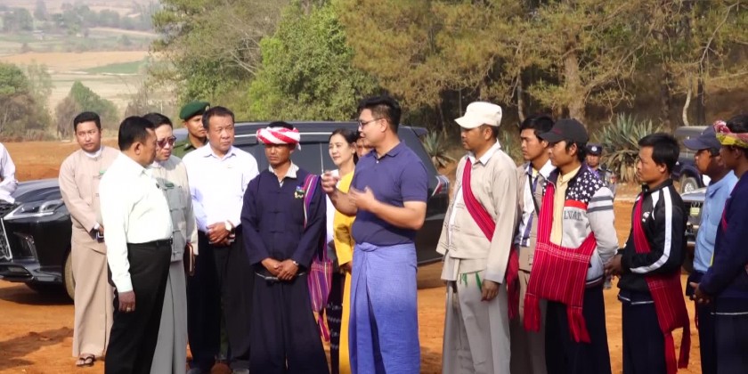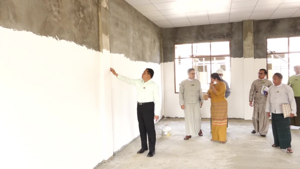 Shan State Chief Minister U Aung Zaw Aye made inspections in Pindaya Township of Danu Self-Administered Zone. First, the Chief Minister inspected construction of a 3-storey building in the compound of the Basic Education High School (Kyone) for the high school of industry, agriculture and Livestock.