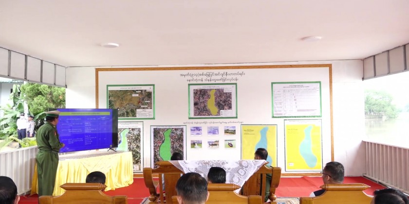 At the Naung Tung Lake, military engineers reported the State Chief Minister on progress of digging the silt from the Lake on which the State Chief Minister supplemented the necessary. They then visited the Kengtung Haw Palace.
