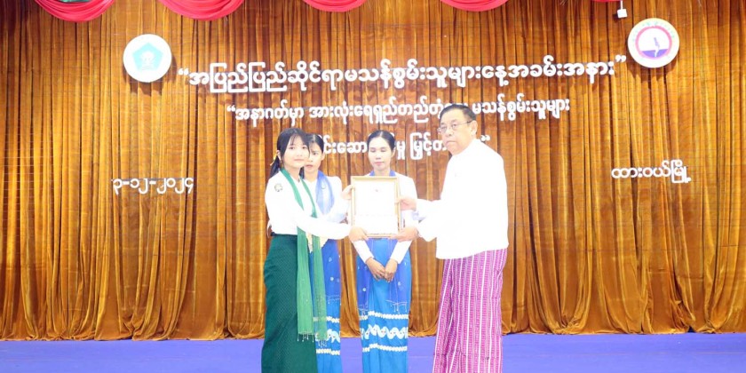 Additionally, Chief Justice of Region High Court presented awards to the middle school essay competition winners. Social Affairs Minister also awarded a prize of 100,000 Kyats to a performance group comprising persons with disabilities.