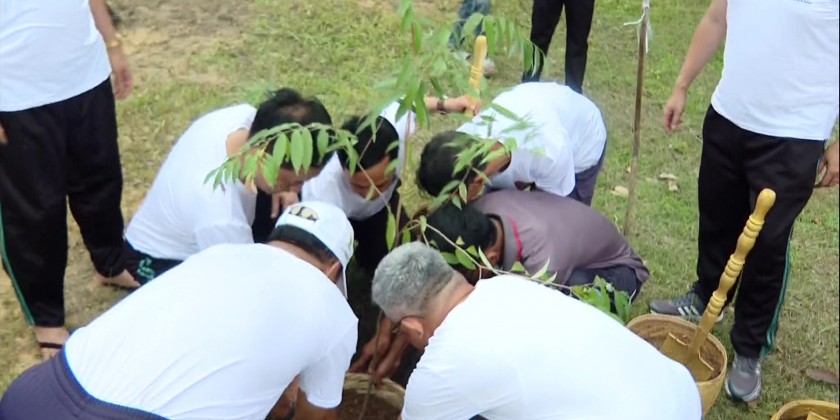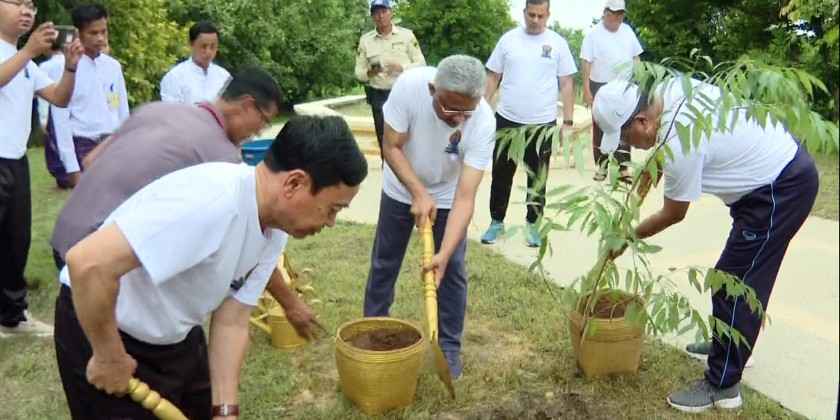 The Deputy Prime Minister and Union Minister for Foreign Affairs then planted a sapling of Mesua ferrea along with Chairman of the Nay Pyi Taw Council, the Deputy Minister and the Ambassador of India in commemoration of the 10th International Day of Yoga at Marlini Lake Garden in Uppatansanti Pagoda.
