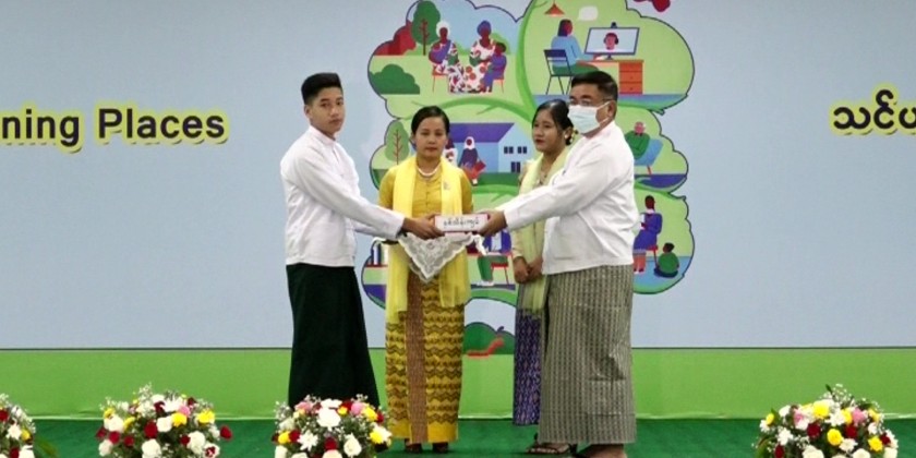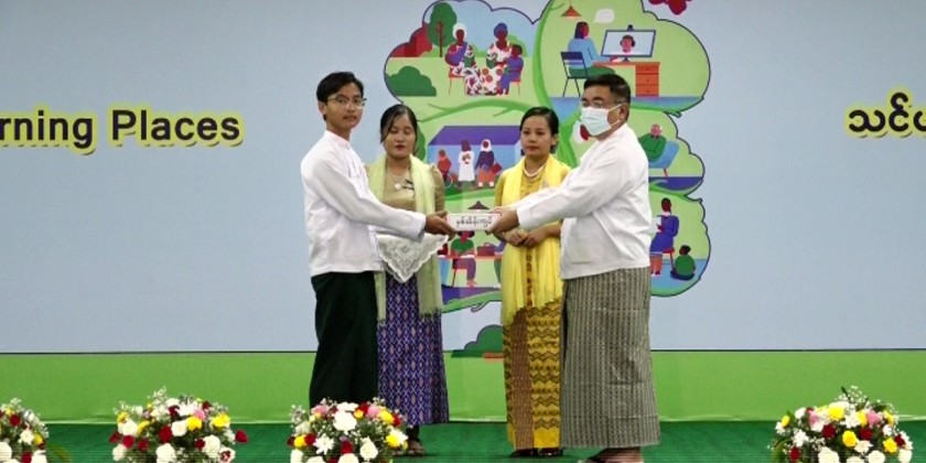Afterward, the students from Basic Education High School (5), Zabuthiri Township, Nay Pyi Taw honored the event with the song of “Extend helping hands for literacy”.