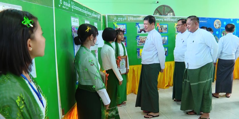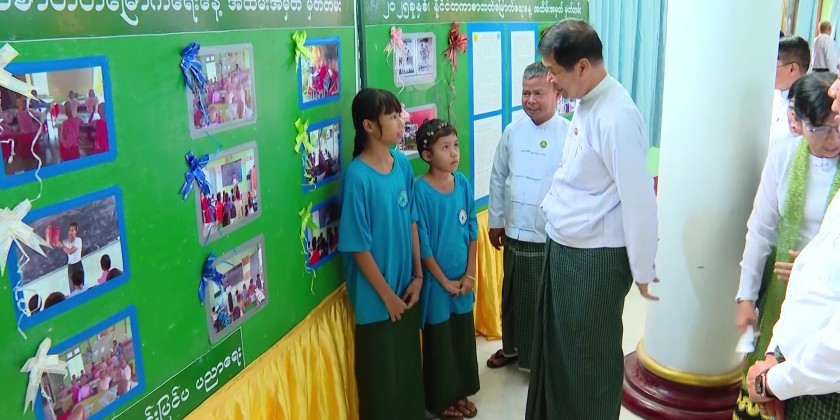 He then watched the performances by students from various basic education schools and from the non-formal primary education program in Pyigyidagun Township. The Chief Minister presented them with cash awards and toured the exhibition.