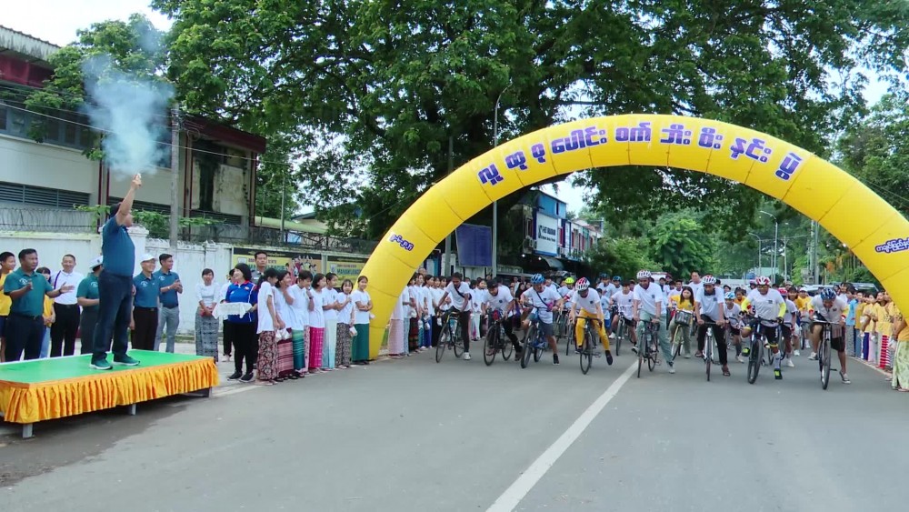 The mass bicycle riding was cheered by the Chief Minister U Khet Htein Nan, Chief Justice of the State High Court U Tuu Jer, State Ministers, State level departmental officials, the trainees from No (1) Ethnic Youth Development Training School and the Chief Minister released the mass bicycle riding by firing a gun in front of People’s Sports Ground in Ayeya Ward.