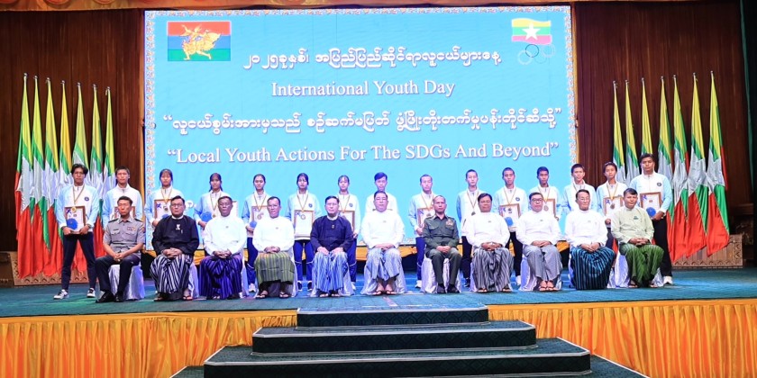 An event celebrating International Youth Day 2025 was held at the State Hall in Loikaw on August 12th. The ceremony was attended by Kayah State Chief Minister U Zaw Myo Tin, the Chief Justice of the State High Court, members of State Government, departmental officials, members of the State Youth Affairs Committee, teachers, students, young athletes, and invited guests.