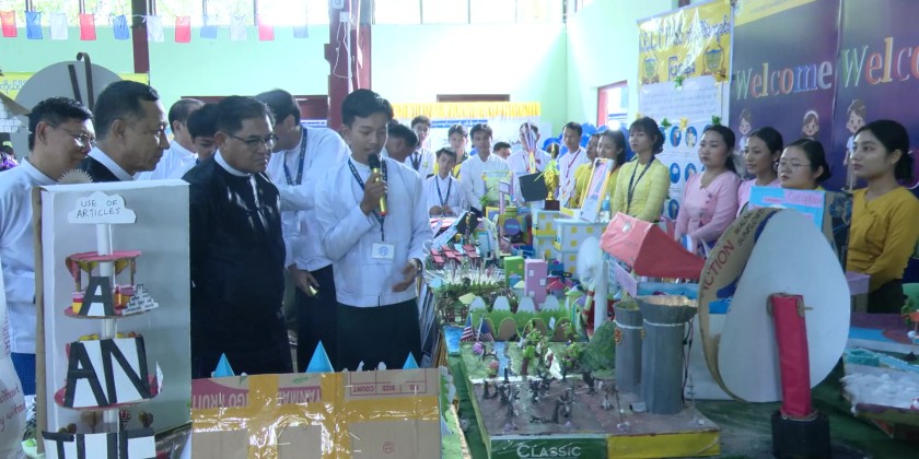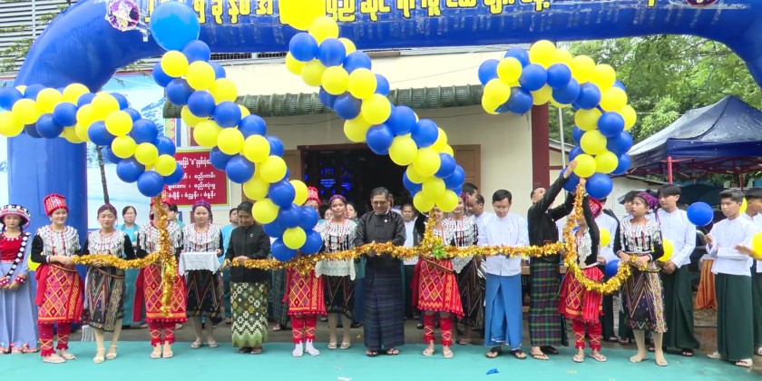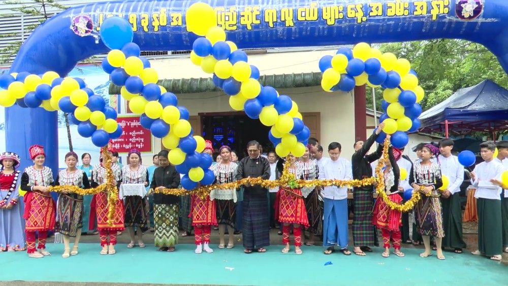 The ceremony began with Chief Minister U Khet Htein Nan, Chief Justice of the State High Court Daw Aye Aye Maw, and State Social Affairs Minister U Moe Min Thein cutting the ribbon to open the event in front of the indoor stadium.