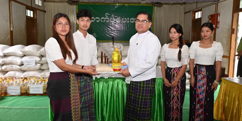 The Chief Minister and the State Social Affairs Minister provided 72 bags of rice, 72 viss of oil, and 1,440 eggs for the 72 households. They also inquired about the families' needs and took steps to fulfill them.