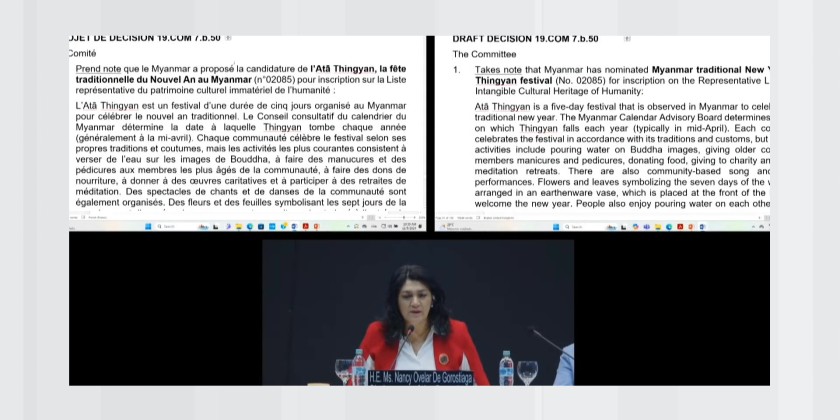 “Myanmar traditional New Year Atā Thingyan Festival” has been successfully inscribed on the Representative List of the Intangible Cultural Heritage of Humanity during the 19th Session of the Intergovernmental Committee for the Safeguarding of the Intangible Cultural Heritage being held in Asuncion, Paraguay, from 2nd December to 7th December.