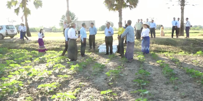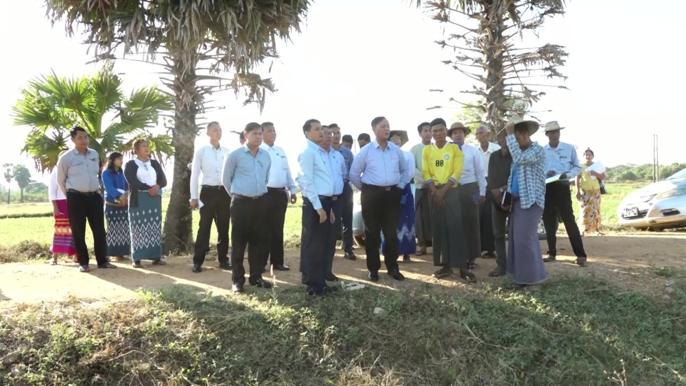 Union Minister for Cooperation and Rural Development, U Hla Moe, accompanied by relevant officials, inspected the Integrated Farming Project owned by the Cooperative Society in Thuhtaykon Village, Pyinmana Township, within the Nay Pyi Taw Union Territory on January 20. First, the Union Minister and party arrived at the multi-purpose farm where they inspected the cultivation of 15 acres of Russian sunflower varieties.