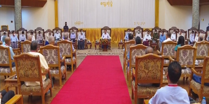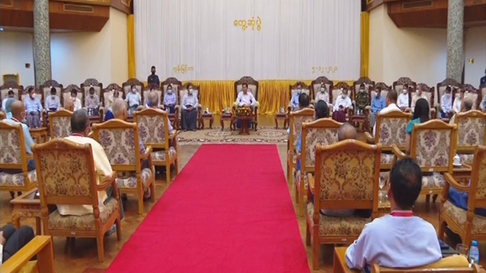 The meeting was also attended by high ranking officials, Vice chairmen from Buddhist Branch, Hindu Branch, Christianity Branch and Islam Branch and a representative from the Chinese temples. In this meeting, the Senior General said that they are temporarily serving the State responsibilities. The government is on the path leading to the Union based on democracy and federalism.