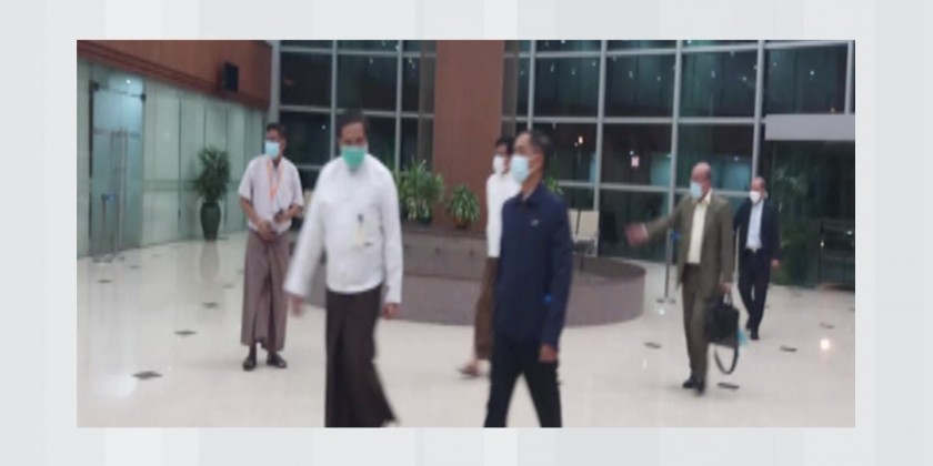 Myanmar Delegation led by Union Minister for International Cooperation and Chairman of the Task Force to facilitate the provision of humanitarian assistance to Myanmar through AHA Centre U Ko Ko Hlaing arrived back at Yangon International Airport via Bangkok on 7 May after attending the Consultative Meeting on Humanitarian Assistance in Myanmar which was held in Phnom Penh, Cambodia.
