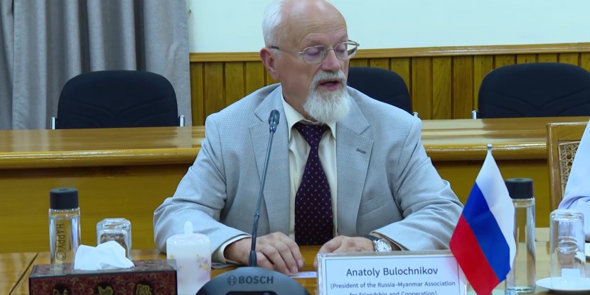 Union Minister for Energy U Ko Ko Lwin received a delegation led by President of the Russia-Myanmar Association for Friendship and Cooperation Mr. Anatoly Bulochnikov at the Ministry on Tuesday.