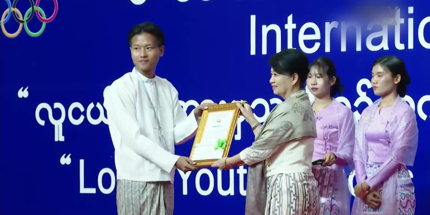 Following that, Deputy Minister U Zin Min Htet and officials presented certificates of honor to the Myanmar Youth Development Association and the Future Youth Group, as well as honorary cash awards, certificates, and trophies to winners of the International Youth Day essay competition and participants of the youth dialogue.