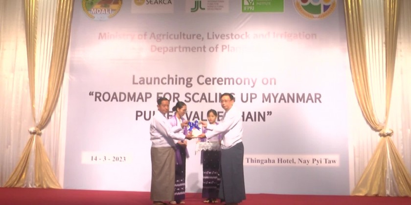 At the ceremony, the Union Minister together with Deputy Minister and the Director General presented the Road Map to the Director of SEARCA and other responsible officials. Myanmar is one of the largest producers and exporters of pulses in the world with a total of 3.95 million acres of cultivation and beans and pulses are the most exporting crops among the agricultural products. In 2020-2021, Myanammr earned about 1.57  billion US dollars which is about 38 percent of foreign exports from the bean export.
