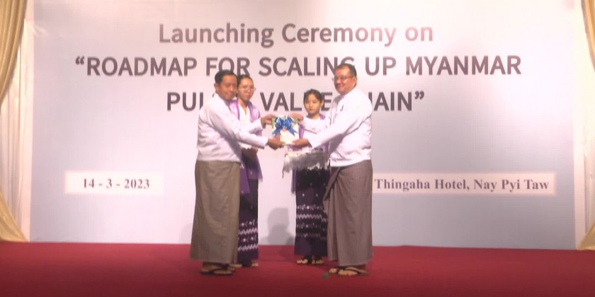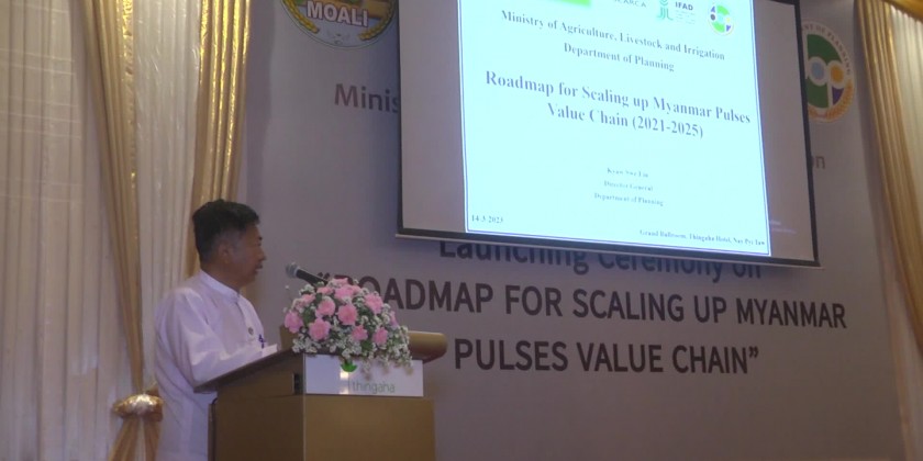 A ceremony to introduce a Road Map for promoting Myanmar’s beans and pulses value chain was held in Nay Pyi Taw on Tuesday. During the ceremony, the Union Minister for Agriculture, Livestock and Irrigation U Min Naung said that the Road Map for promoting Myanmar’s beans and pulses value chain is the main process of Agriculture Transformation and Market Integration ATMI-ASEAN project.