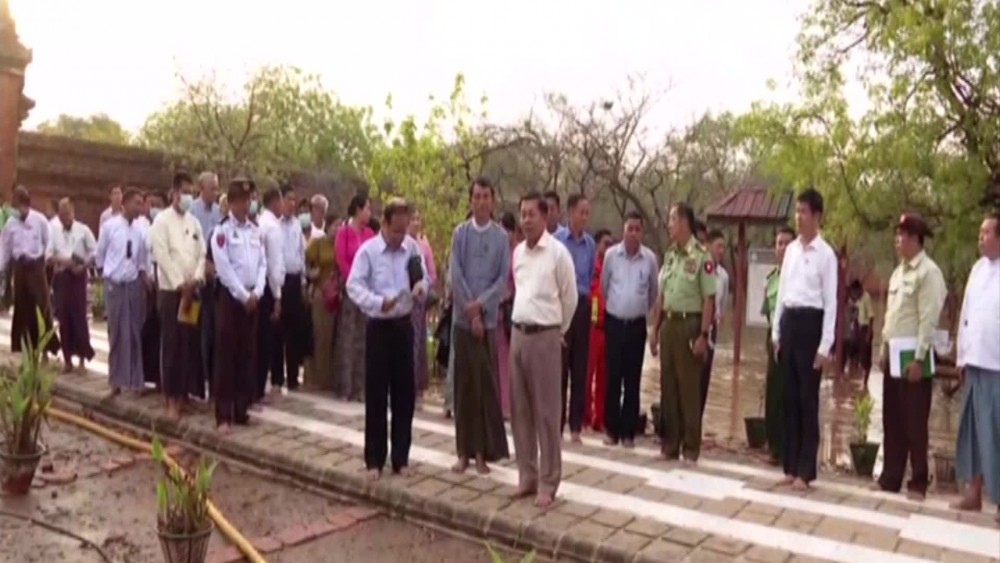 Chairman of the State Administration Council Prime Minister Senior General Min Aung Hlaing, wife Daw Kyu Kyu Hla, Joint-Secretary of the SAC Lt-Gen Ye Win Oo and party inspected water inundation and damages by natural disasters in Bagan Archaeological Zone on Tuesday and gave necessary instructions.