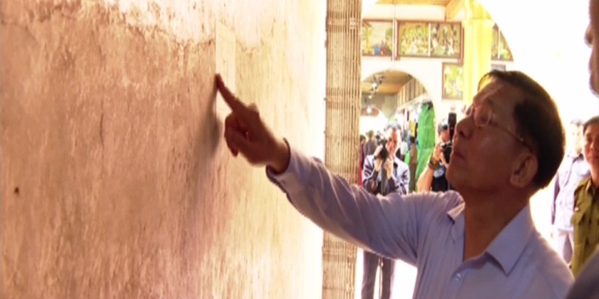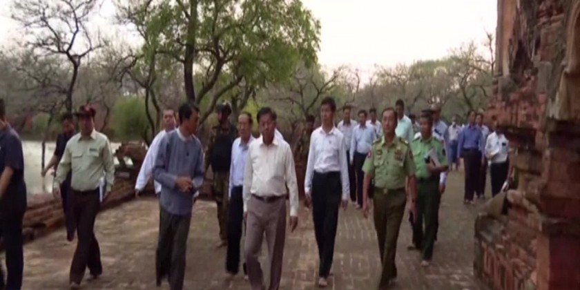 At the HtiloMinlo pagoda, the Prime Minister and party looked into damages at the inside and outside pagoda and urged to emphasize on preservation tasks of pagodas and temples because of invaluable ancient cultural heritages. The Prime Minister and party then proceeded to Shwezigon Pagoda built by King Anawrahta and King Kyan Sit and instructed the needs on necessary maintenance tasks for long-term durability. They then observed the biographical stone inscription of King Kyan Sit at the pagoda and called for preserving it with advanced method than now and to display the inscription with tablets for locals and foreigners to be able learn easily. While visiting Ananda temple, HtiloMinlo and Shwezigon Pagodas in the Bagan Archaeological Zone to inspect inflow of water and damages by natural disaster, the Prime Minister donated cash and cordially greeted people. The floods were occurred at the pagodas and temples including Shwezigion, Ananda, DhammayanGyi, Sulamani, DhammaRazaka, HtiloMinlo pagodas and 8 ancient pagodas/buildings were slightly damaged and measures are being undertaken to maintain the damaged building as soon as possible without losing original forms.