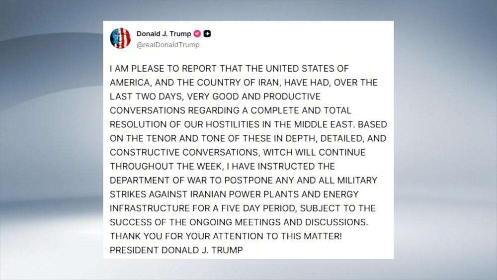 On Monday, U.S. President Donald Trump said he had ordered a five-day delay of planned strikes on Iranian power plants and energy facilities, citing what he described as “very good and productive conversations” over the past two days aimed at easing tensions in the Middle East.