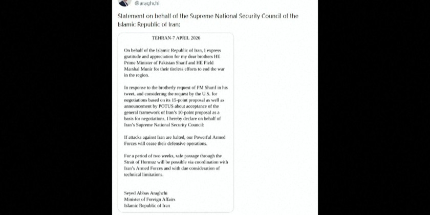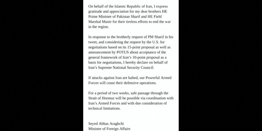 On the Iranian side, Foreign Minister Seyed Abbas Araghchi promised safe passage through the Strait of Hormuz during the 2-week ceasefire under "coordination" with Iranian armed forces, saying that Iran will hold negotiations with the U.S. side in Pakistan's capital Islamabad.