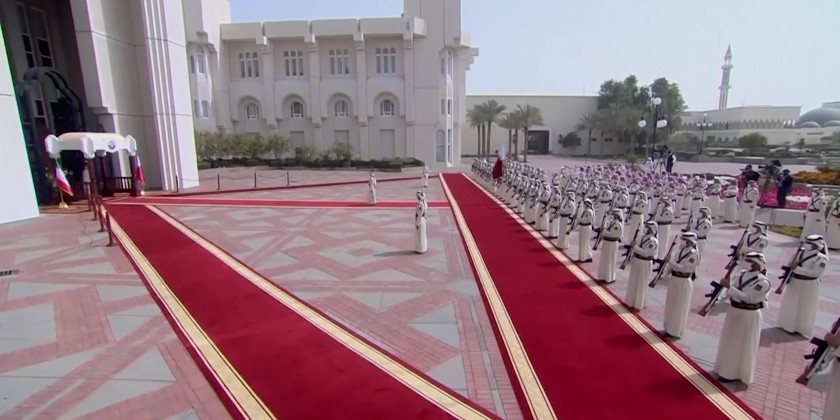 Iran's president arrived in Qatar on Monday and was welcomed in an official ceremony by the country's ruling emir ahead of a global gas summit. This is President Ebrahim Raisi's fourth trip abroad since he took office six months ago.