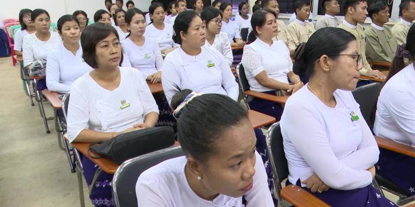 Then, the Union Minister met with the staff and trainees of the Department of Irrigation and Water Utilization Management and encouraged them to become the reliable and excellent civil servants who can contribute the development of the nation and provided foodstuff.