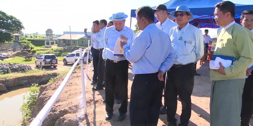 The Deputy Minister instructed for work site safety and timely completion of the tasks, meeting the set standard. They then inspected the chosen site for the immersed tube tunnel, pumping process at the canals and electricity works as well as the thriving monsoon paddy fields, irrigated by Meikhtila Plain River Water Pumping Project.