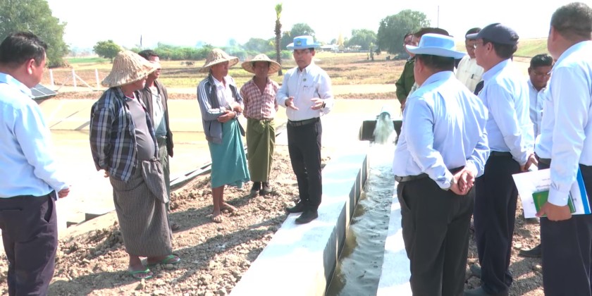 In meeting with local farmers, the Union Minister instructed for cultivation of paddy, oil crops and other income generated crops. He also urged officials to provide assistance for technical issue faced by the farmers. He then visited the construction site of underground water conduit at Kintar Left Canal in Wuntwin Township and instructed for timely completion of the tasks in line with the regulations.  Severe flooding along the Samon River caused by Typhoon Yagi in September 2024 damaged and broke the Samon conduit. As a result, a new conduit has been under reconstruction during the 2024–2025 fiscal year.