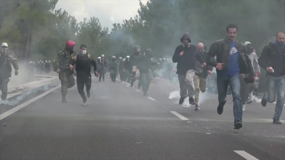 Police and protesters clashed on the Greek island of Lesbos on Wednesday against the creation of a new closed detention centre for migrants. It is the second day of clashes between protesters and police near the site where the new reception centre is being built. A police spokesman said police fired tear gas in response to protesters throwing stones.