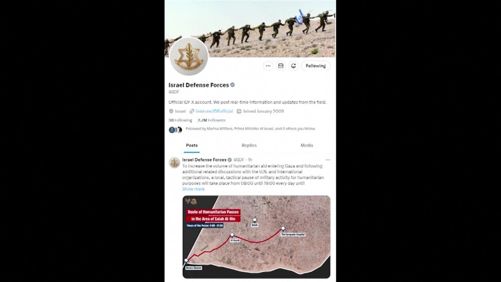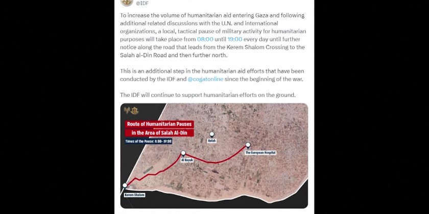 The Israel Defense Forces said on its X statement: “…a local, tactical pause of military activity for humanitarian purposes will take place from 08:00 until 19:00 (0500 GMT until 1600 GMT) every day until further notice along the road that leads from the Kerem Shalom Crossing to the Salah al-Din Road and then northward.”