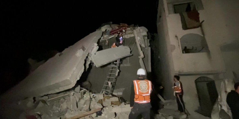 An Israeli airstrike targeted a residential home in the al-Amal neighborhood of Khan Younis, southern Gaza, resulting in multiple fatalities. Rescue teams from the Palestinian Civil Defence and the Red Crescent worked to retrieve bodies from the debris and transported them to a nearby hospital.