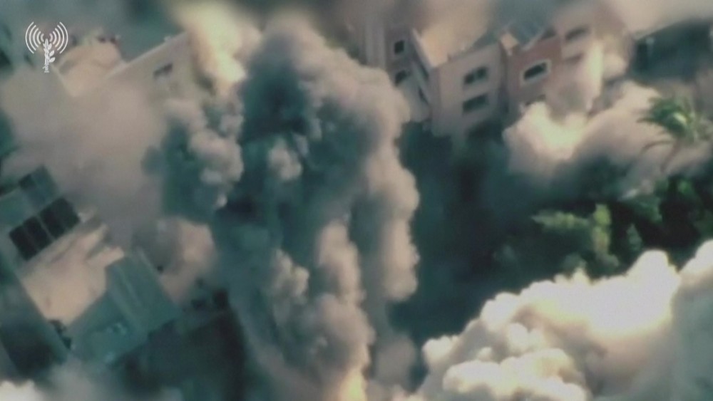 Israeli army released the Footage that showing air strikes hitting targets in the Gaza Strip on Monday.