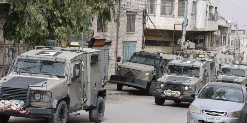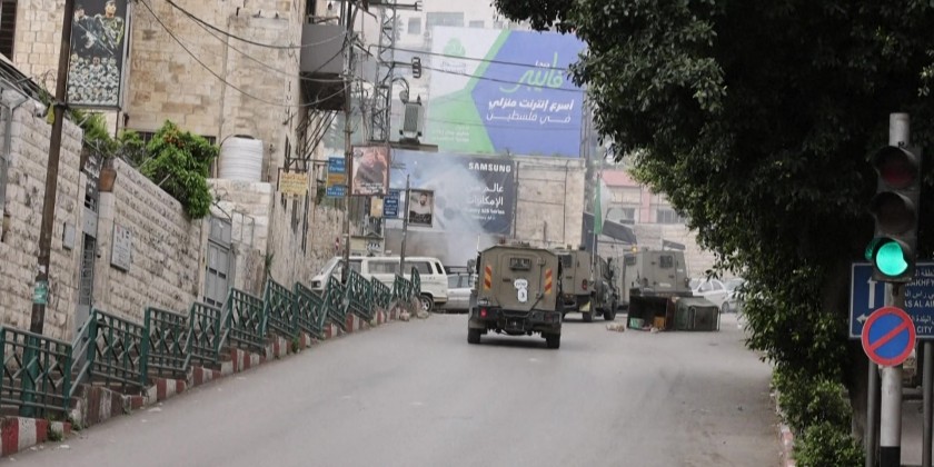 Israeli military vehicles were seen in the streets of Nablus during a raid in the occupied West Bank city.