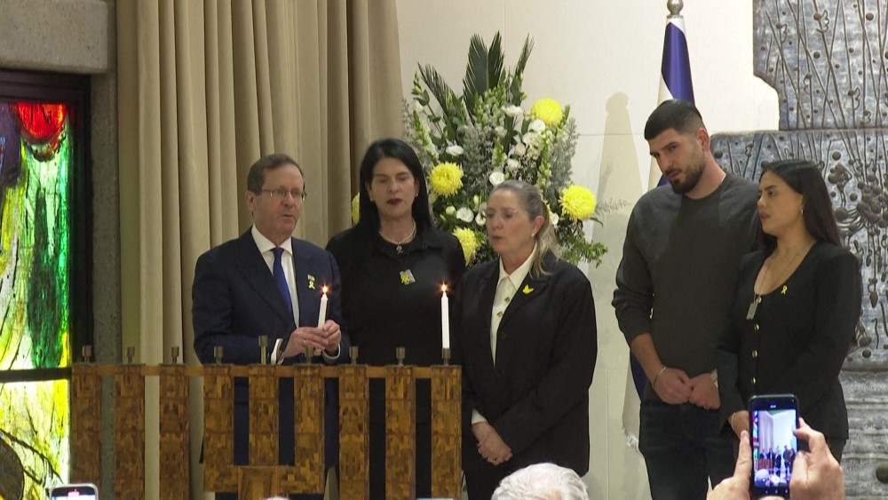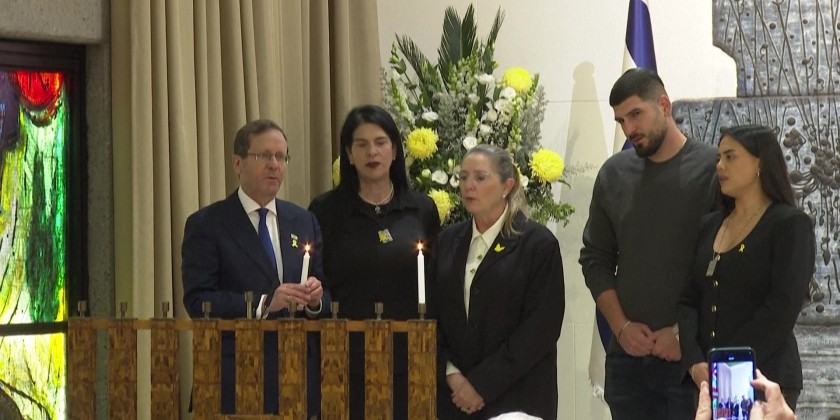 Israeli president hosts former hostages, bereaved families for first Hanukkah candle lighting