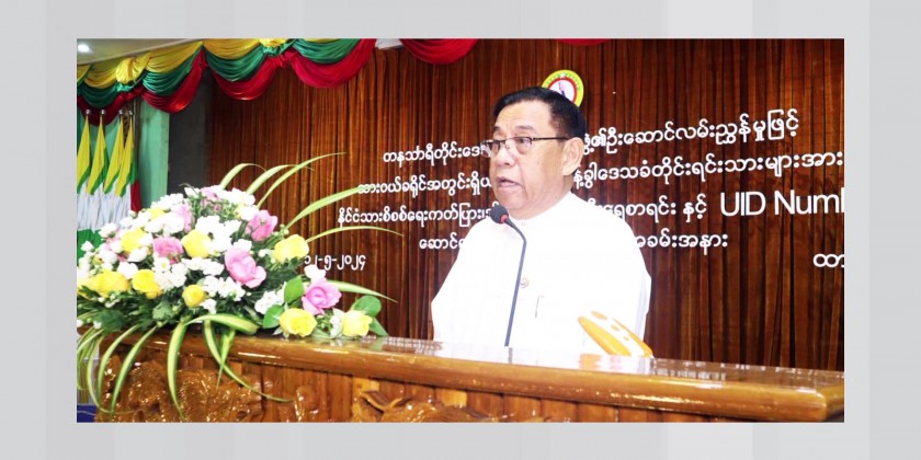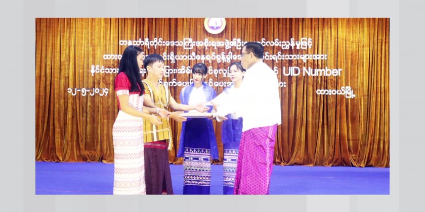 Organized by Taninthayi Region Government with the collaboration of Ministry of Immigration and Population and Ministry of Ethnic Affairs, issuing Citizenship Scrutinizing Card, Household population certificate and U.I.D Number and handing over to the temporary displaced local ethnic people in Dawei District was held at the Township Hall of Dawei Township in the morning on Sunday.