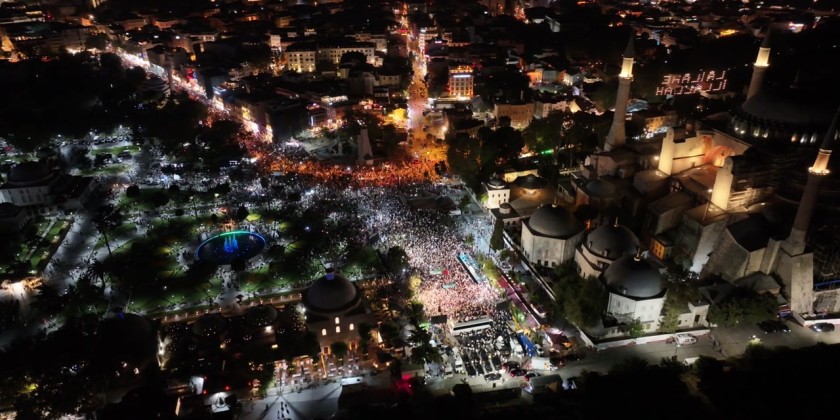 Tens of thousands of Istanbul residents participated in a solidarity march for Gaza, carrying lanterns and phone lights from Beyazıt Square to Hagia Sophia. The march, organized under the slogan “Be a Light of Hope for Gaza,” aimed to protest Israel’s ongoing military operations in Gaza. Participants of all ages, including international tourists, joined the demonstration to voice their opposition to what they describe as genocide.