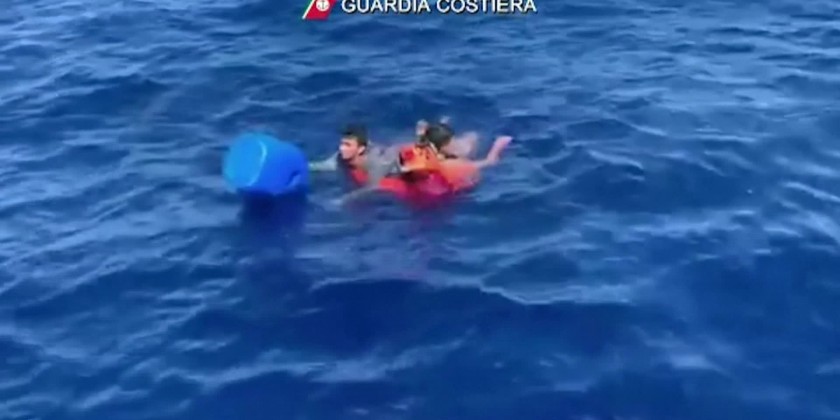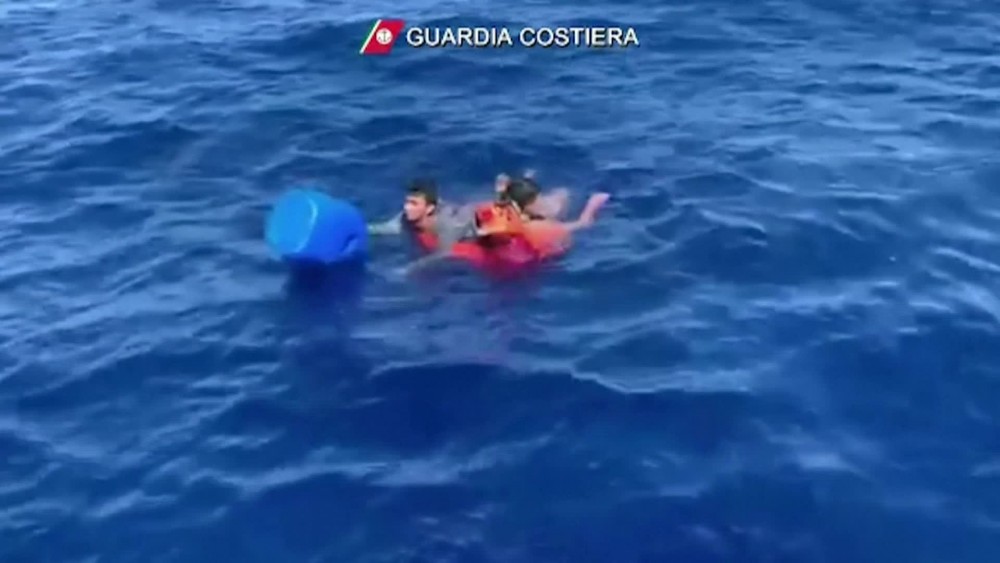 Footage showed a coastguard diver swimming out to rescue two of the migrants who were in the water without lifejackets. The coastguard patrol boat then went on to rescue the migrants on the drifting boat. The total of 17 migrants were found around four miles off Lampedusa's coast.